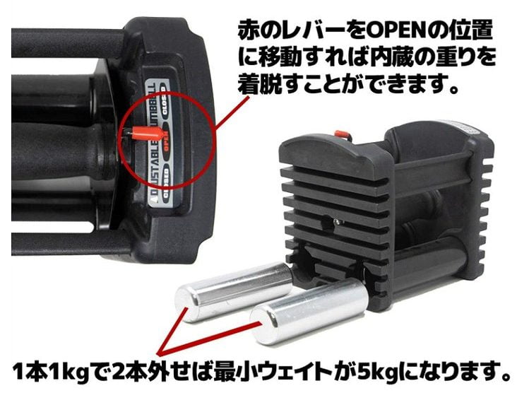 私自身はブロック式ダンベルの重心がずれるのが嫌なので、この棒は常に抜いています。