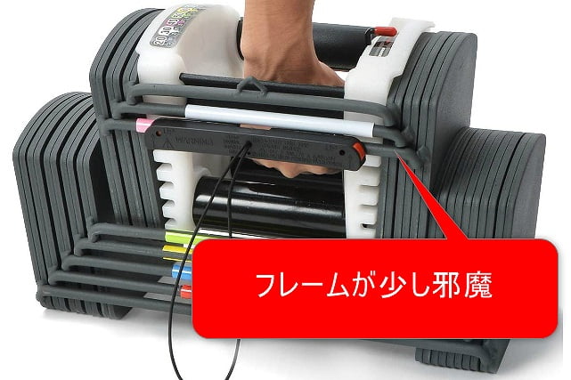 ダイヤル式の場合、サイズ感が大きいためトップポジションにのときにダンベル同士がぶつかります。